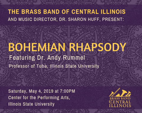 The Brass Band of Central Illinois will present its spring concert “Bohemian Rhapsody” at 7:00 p.m. on Saturday, May 4, 2019. The concert will be held in the auditorium of Center for the Performing Arts at Illinois State University in Normal, IL.