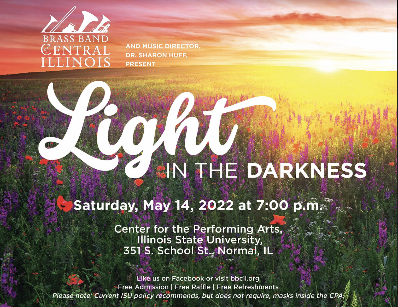 [Program] May 14, 2022 – “Light in the Darkness”If you cannot attend the concert in person, it will be live streamed free on the ISU School of Music YouTube channel. Here is a link to the live stream event: https://finearts.illinoisstate.edu/live/